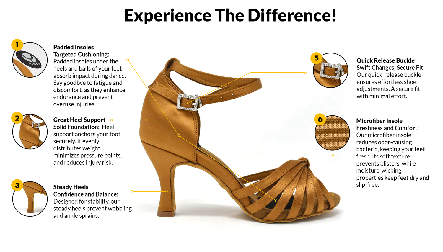 Luxurious Comfort: Our dance shoes come equipped with specially designed padded insoles, offering exceptional comfort and support where dancers need it most — under the heels and balls of the feet. Ideal for reducing fatigue during salsa, bachata, and ballroom dancing.