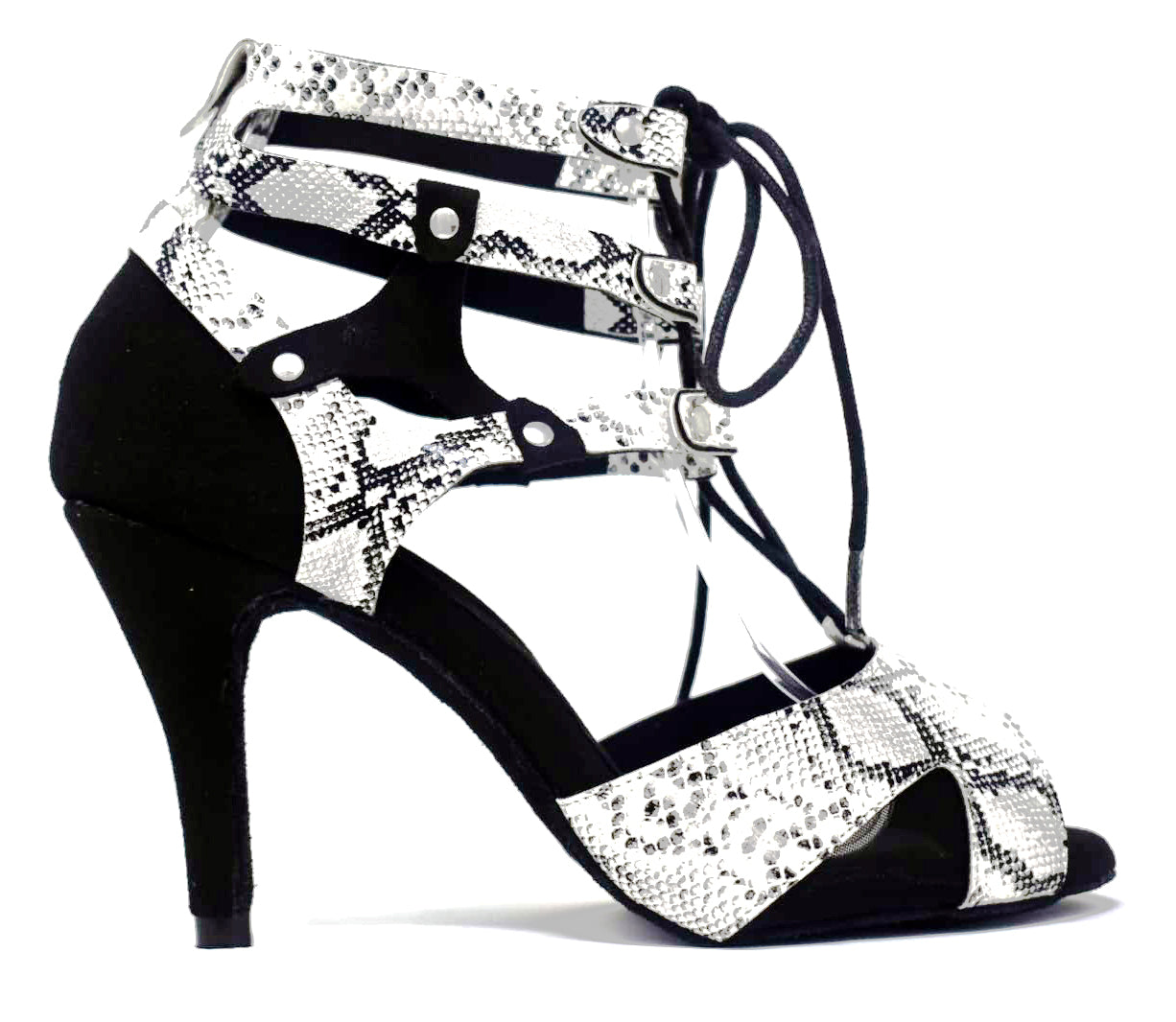 ✅ Premium Materials: Made with Black Floc Microfiber and a stylish White & Black Snake Pattern PU for an elegant, bold look that stands out on and off the dance floor.