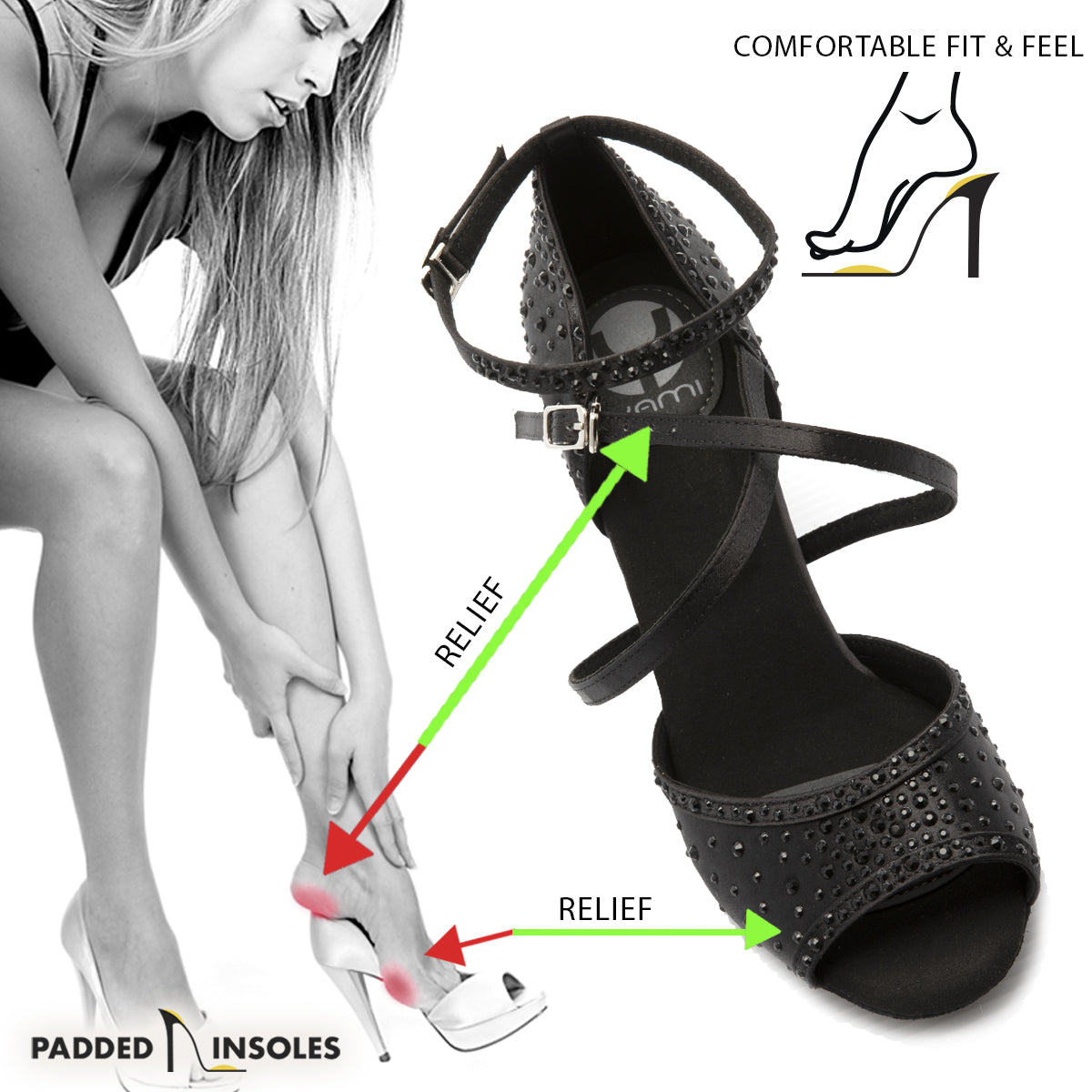 • Only dance shoes in the world that contain extra padding in the areas you need the most relief – under the balls of the feet and heels.