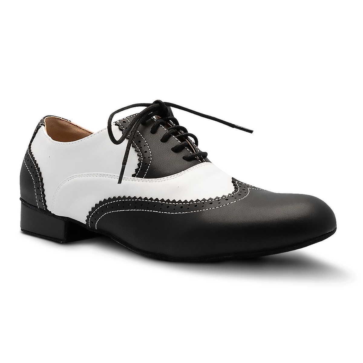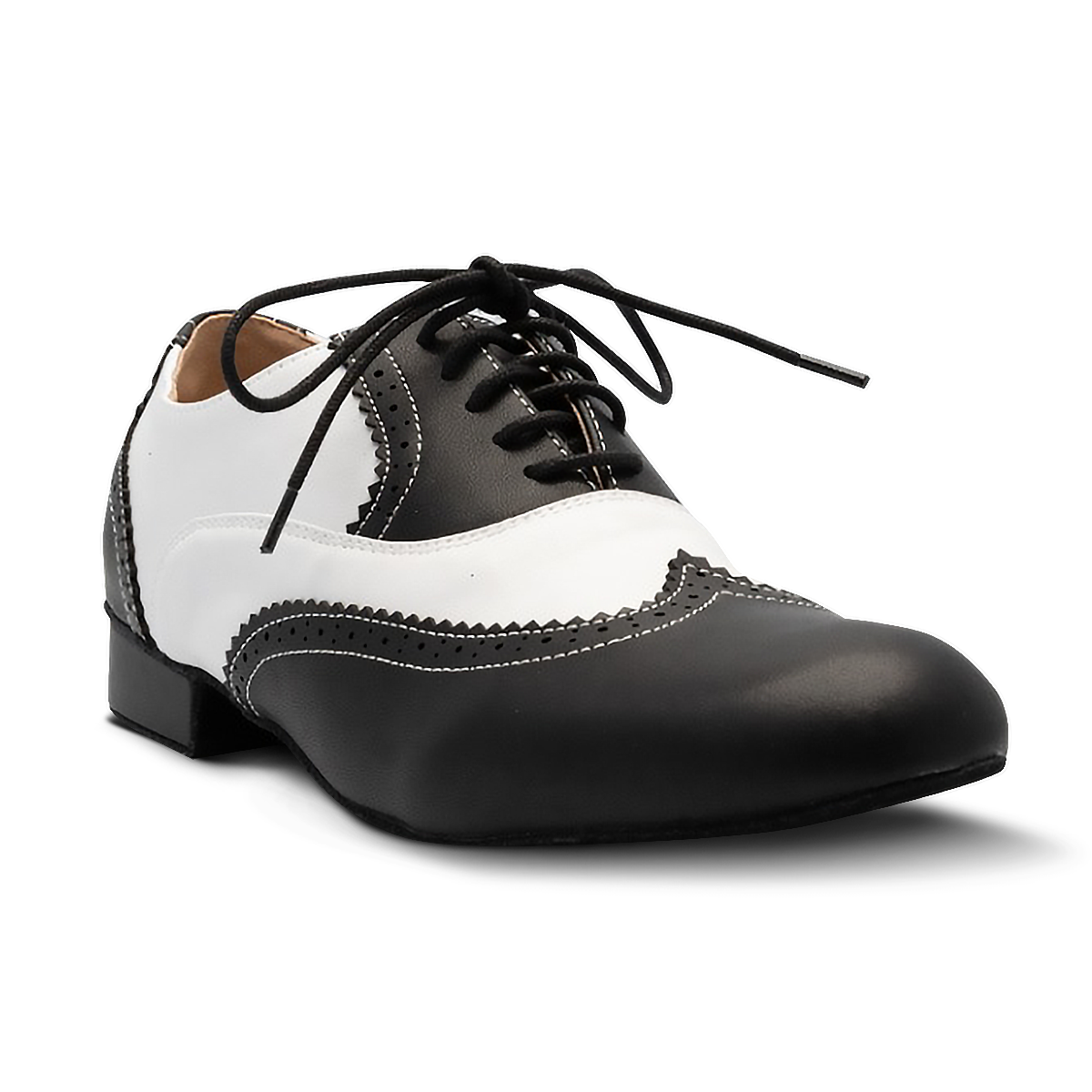- Elevate your stage presence with the Delfin Black and White Performance Shoe. Made of top-quality, full-grain PU leather. Features Suede Outer Sole for easy spinning.