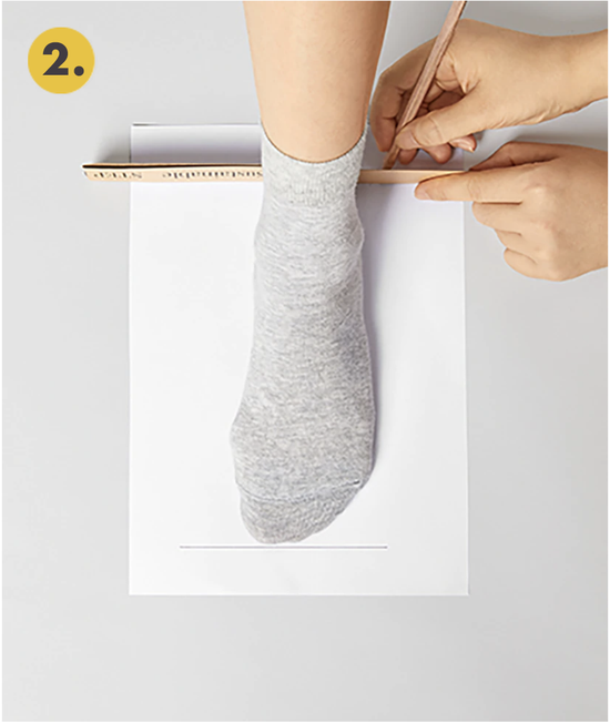 Draw a straight line on the paper at the end of your longest toe, ensuring that the line is perpendicular to the edge of the paper. This will provide an accurate measurement of the length of your foot.
