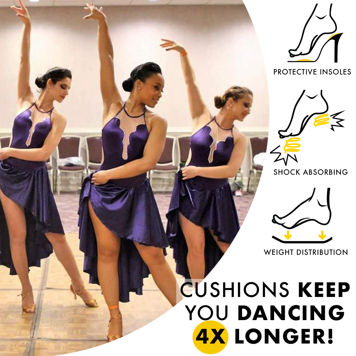 Only dance shoes in the world that contain extra padding in the areas you need the most relief – under the balls of the feet and heels.